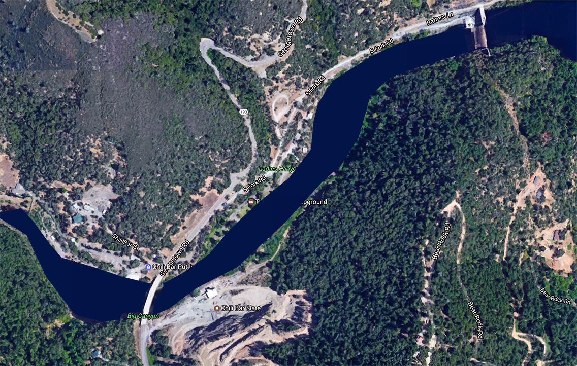 Then I drove down to the river to see it from the bridge at Chili Bar.
