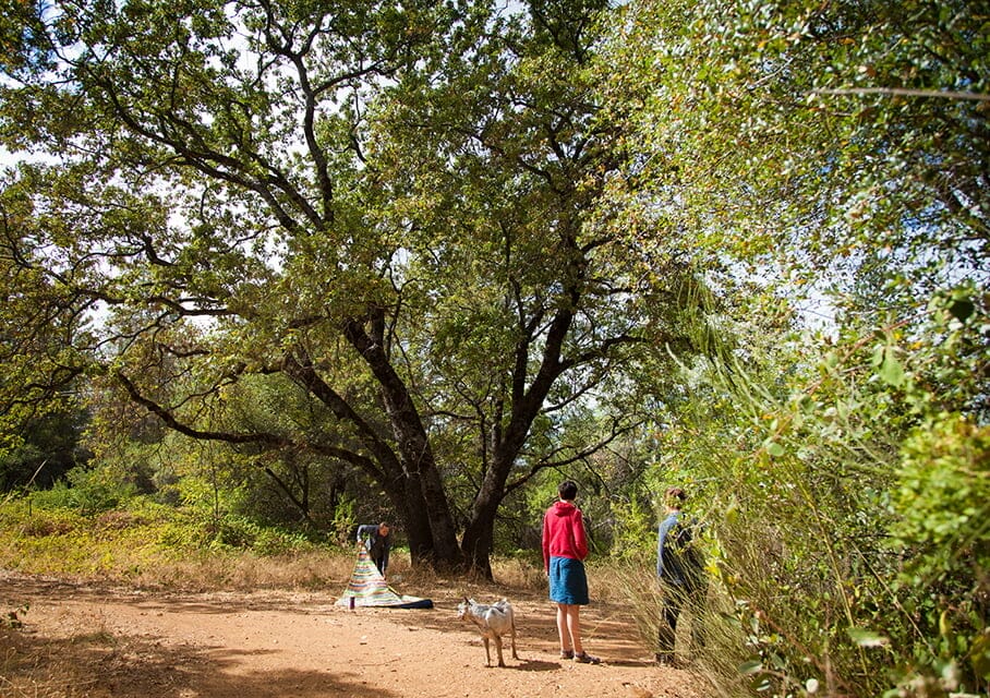 Take some time during your stay to walk down to the grandmother oak at the bottom of the hill. Bring a gift of your choosing, something that is biodegradable like a hand-made wooden bead; some corn, a pinch of tobacco, or another plant that is sacred to you; a song; poem; story; or some water. Give your gift to the tree, together with your appreciation. What do you like about this tree? Is it her beauty? Her architecture? Her shade?
