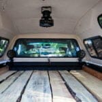 So that pretty much left us with camping. First thing I did was get a camper-shell for the truck and build a platform in the truck for a regular mattress — we were of course going to sleep comfortably.