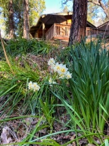 February can be such a beautiful time of year at Reverie Retreat. The very early spring blooms begin to pop out now – already we are seeing hellebore blooming and there is the sweetest little field of daffodils and birds of paradise on the bank below the cottage. Every day I walk around to see what else is popping up – I noticed the tulips are starting to poke their leaves above the soil, and pretty soon the hillside will be dotted with narcissus and daffodils – some of them wild, and others planted by the people who lived here before us.