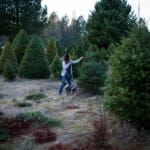 We brought Copper, all decked out in her sweater to help us pick out a tree.